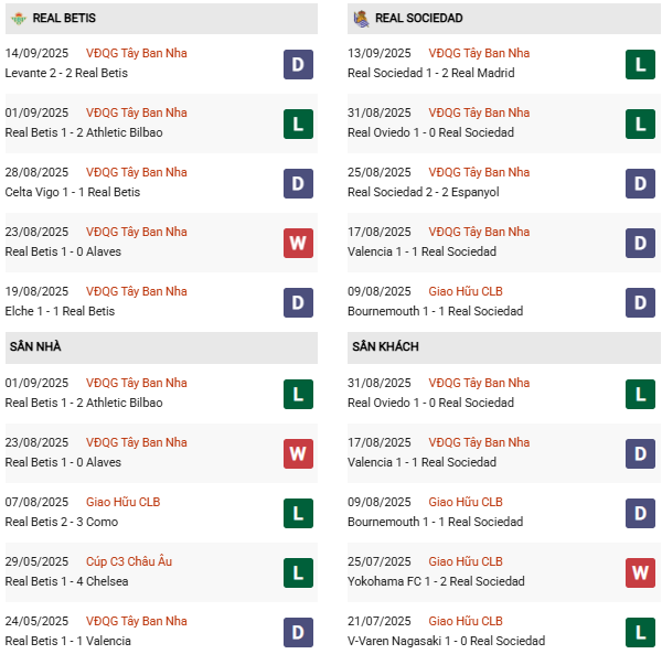 Dự đoán Real Betis vs Sociedad, 02h00 ngày 20/09, vòng 5 VĐQG Tây Ban Nha, sân La Cartuja. Với tình hình phong độ khá nghèo nàn của hai đội thời điểm hiện tại, khả năng rất cao họ sẽ phải chia điểm sau 90 phút.