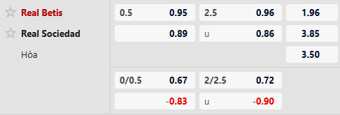 Thông tin tỷ lệ kèo bóng đá Real Betis vs Sociedad: