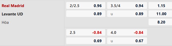 Thông tin tỷ lệ kèo bóng đá Real Madrid vs Levante: