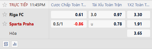 Thông tin tỷ lệ kèo Riga FC vs Sparta Praha: