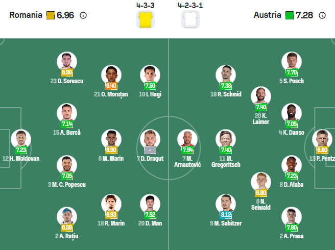 Đội hình dự kiến Romania vs Áo: