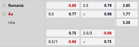Soi kèo tài xỉu Romania vs Áo: