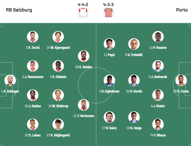 Đội hình dự kiến Salzburg vs Porto: