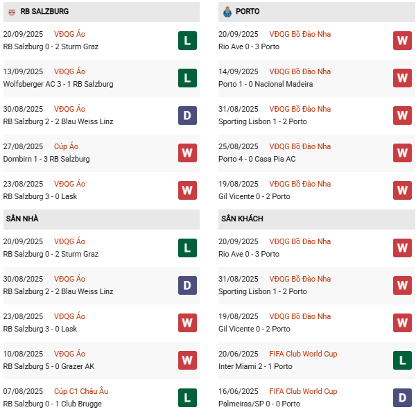 Thống kê phong độ Salzburg vs Porto: