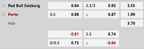 Thông tin tỷ lệ bóng đá Salzburg vs Porto: