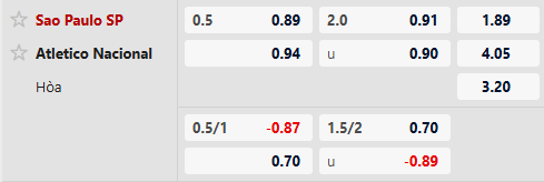 Thông tin kèo bóng đá Sao Paulo vs Atletico Nacional: