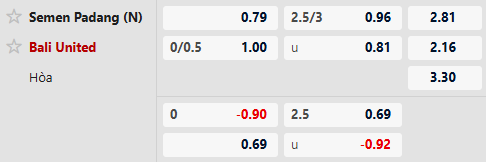 Thông tin tỷ lệ Semen Padang vs Bali United: