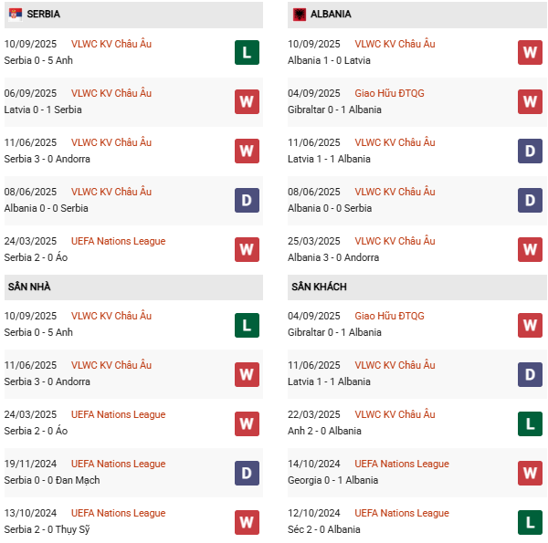 Trước đó, Serbia từng hòa Albania 0-0 trong trận ra quân hồi tháng 6, rồi thắng Andorra và Latvia trước khi nhận thất bại nặng nề trước tuyển Anh. Với 7 điểm sau 4 trận đã đấu, Serbia tạm đứng thứ 3 trong bảng. Dù vậy, đội bóng có biệt danh “Đại bàng” vẫn đang duy trì cơ hội cạnh tranh suất dự World Cup khi chiến dịch phía trước còn dài.