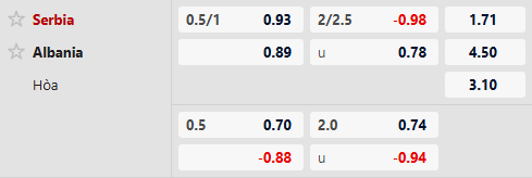Thông tin tỷ lệ bóng đá Serbia vs Albania: