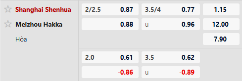 Thông tin tỷ lệ Shanghai Shenhua vs Meizhou Hakka: