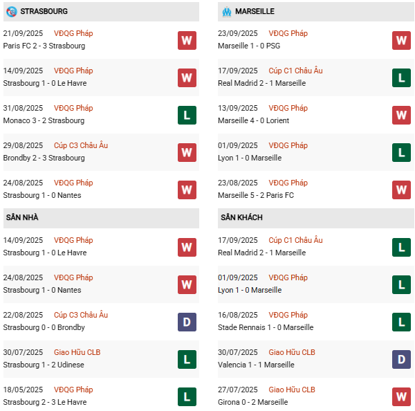- Trên sân nhà, Strasbourg thắng 2, thua 3 trước Marseille.