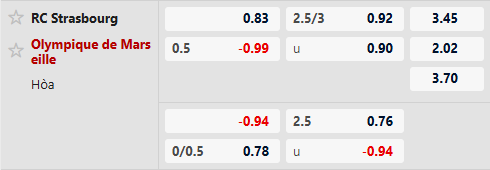Thông tin tỷ lệ bóng đá Strasbourg vs Marseille: