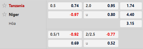 Thông tin tỷ lệ kèo Tanzania vs Niger: