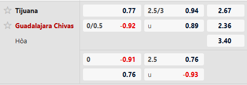 Thông tin tỷ lệ kèo Tijuana vs Guadalajara Chivas: