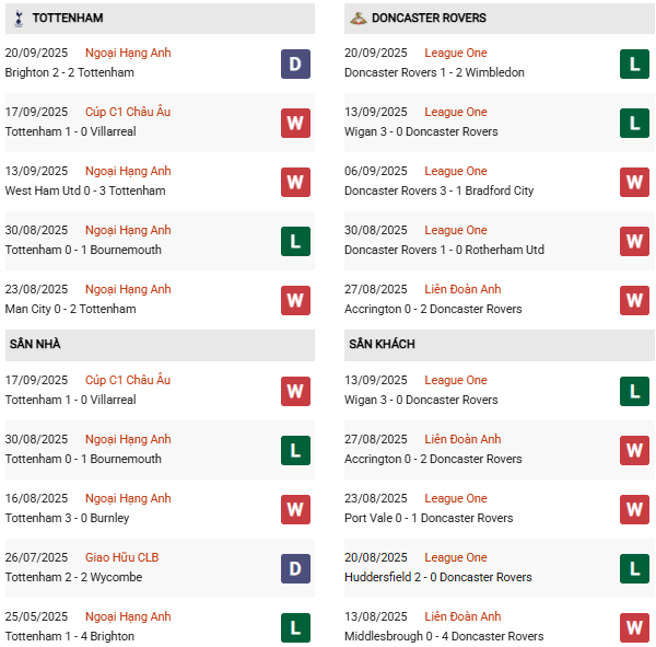 Thống kê phong độ Tottenham vs Doncaster Rovers: