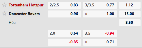 Thông tin tỷ lệ bóng đá Tottenham vs Doncaster Rovers: