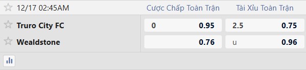 Thông tin tỷ lệ Truro City vs Wealdstone: