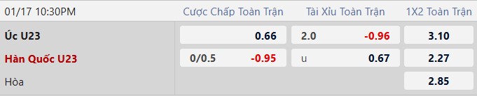 Thông tin kèo bóng đá U23 Australia vs U23 Hàn Quốc: