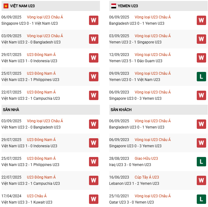 Thành tích đối đầu U23 Việt Nam vs U23 Yemen: