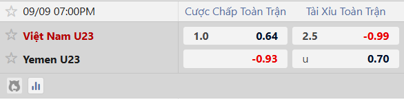 Thông tin tỷ lệ kèo bóng đá U23 Việt Nam vs U23 Yemen: