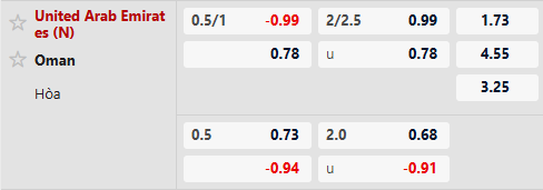 Đáng chú ý, thống kê đối đầu lại không ủng hộ họ. Trong tám lần chạm trán gần nhất với UAE, Oman chỉ thắng 1 trận, còn lại là 4 thất bại, 3 trận hòa. Với sự ổn định hơn của UAE với mạch 3 chiến thắng liên tiếp, giới chuyên môn dự đoán họ có nhiều khả năng giành chiến thắng. Với tỷ lệ cược UAE chấp 3/4 bàn cả trận, kèo trên nên được theo cược.