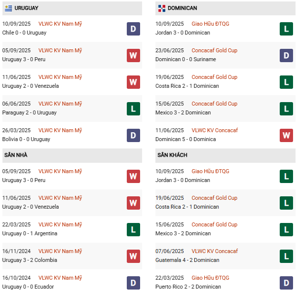 Thành tích đối đầu Uruguay vs CH Dominican: