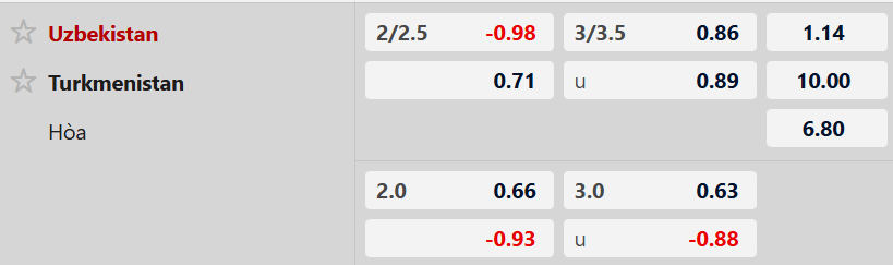 Thông tin tỷ lệ kèo Uzbekistan vs Turkmenistan: