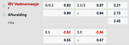 Vestmannaeyjar chấp 1/4 bàn cả trận. Vestmannaeyjar sẽ nỗ lực tìm lại phong độ khi tiếp đón Afturelding trong trận đấu quan trọng tại vòng 12. Ở chiều ngược lại, phong độ sân khách của Afturelding vẫn là dấu hỏi lớn, khi chỉ thắng 1/7 chuyến hành quân gần nhất – điều cho thấy sự thiếu ổn định đáng kể. Với thành tích thi đấu sân nhà tốt hơn và lợi thế tâm lý, Vestmannaeyjar được đánh giá cao hơn trong việc giành trọn 3 điểm.