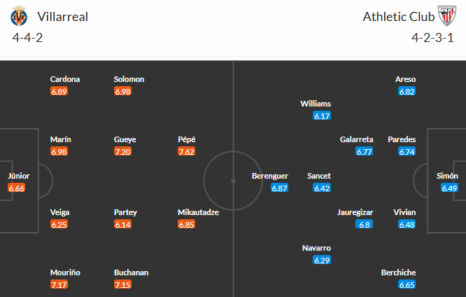 Đội hình dự kiến Villarreal vs Athletic Bilbao: