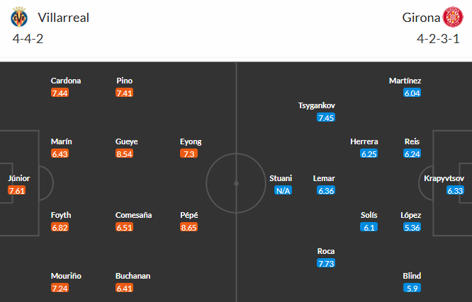- Villarreal thắng 7, hòa 1, thua 2 trong 10 trận gặp Girona gần đây.