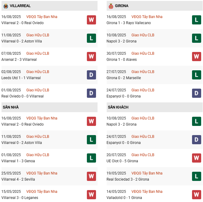 - Trên sân nhà, Villarreal thắng 2, thua 3 trước Girona.