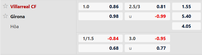 Thông tin tỷ lệ bóng đá Villarreal vs Girona: