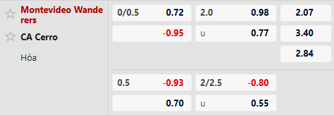 Wanderers chấp 1/4 bàn. Dù Wanderers đang có phong độ kém cỏi, nhưng Cerro lại thường chơi cực tệ trên sân khách. Wanderers vẫn có chút lợi thế sân bãi và khả năng giành ít nhất 1 điểm. Tuy nhiên, để thắng kèo châu Á, đội chủ nhà cần tận dụng triệt để cơ hội ghi bàn, điều mà họ đã không làm tốt trong thời gian qua.