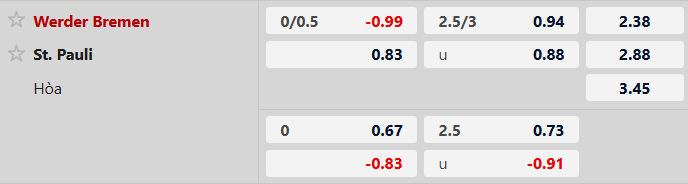 Thông tin tỷ lệ kèo Werder Bremen vs St. Pauli: