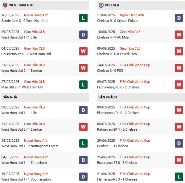 - West Ham thắng 2, hòa 1, thua 7 trong 10 trận gặp Chelsea gần đây.