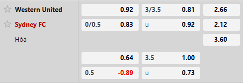 Thông tin tỷ lệ bóng đá Western United vs Sydney FC: