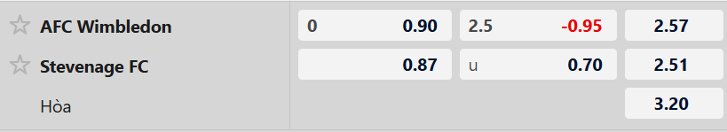 Thông tin tỷ lệ kèo Wimbledon vs Stevenage: