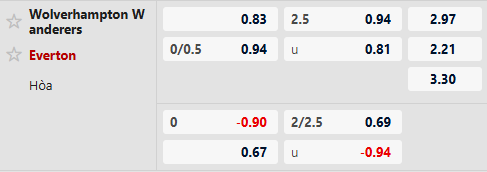 Trận đấu gần nhất tại giải Ngoại Hạng Anh giữa hai đội đã diễn ra cực kỳ hấp dẫn khi có đến 5 bàn thắng. 3 trên 4 lần gần nhất hai đội gặp nhau đều về Tài, trong đó Everton có cho mình đến 8 bàn còn Wolves có 5 pha lập công. Tỷ lệ kèo tài xỉu 2 1/2 sẽ phù hợp hơn nhiều dành cho sự xuất hiện của kèo Tài sau 90 phút.