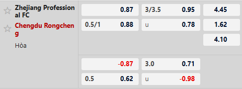 Thông tin tỷ lệ Zhejiang vs Chengdu Rongcheng: